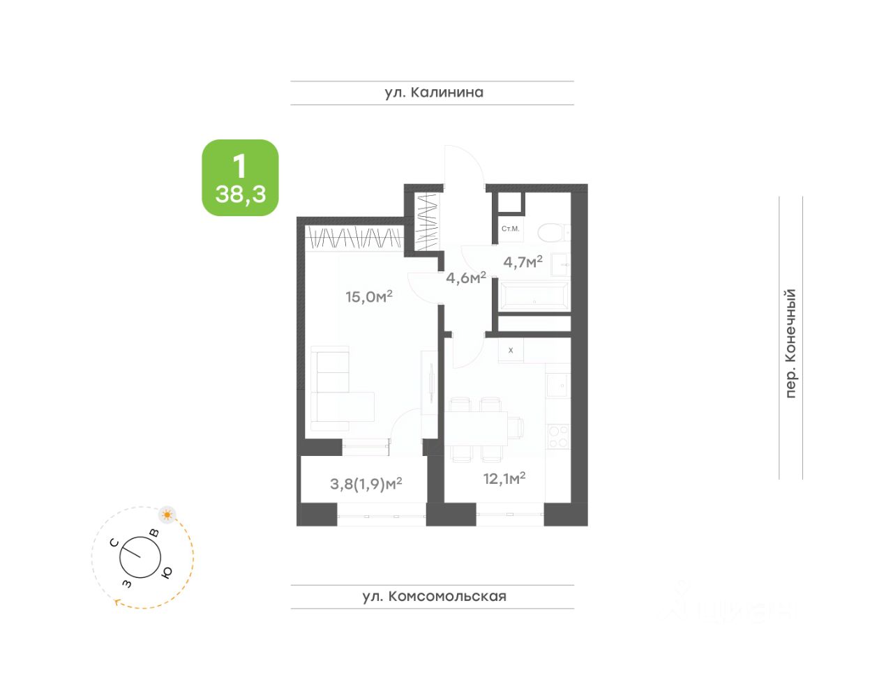 Однокомнатная квартира для пары и людей, ценящих спокойную и уединенную жизнь;