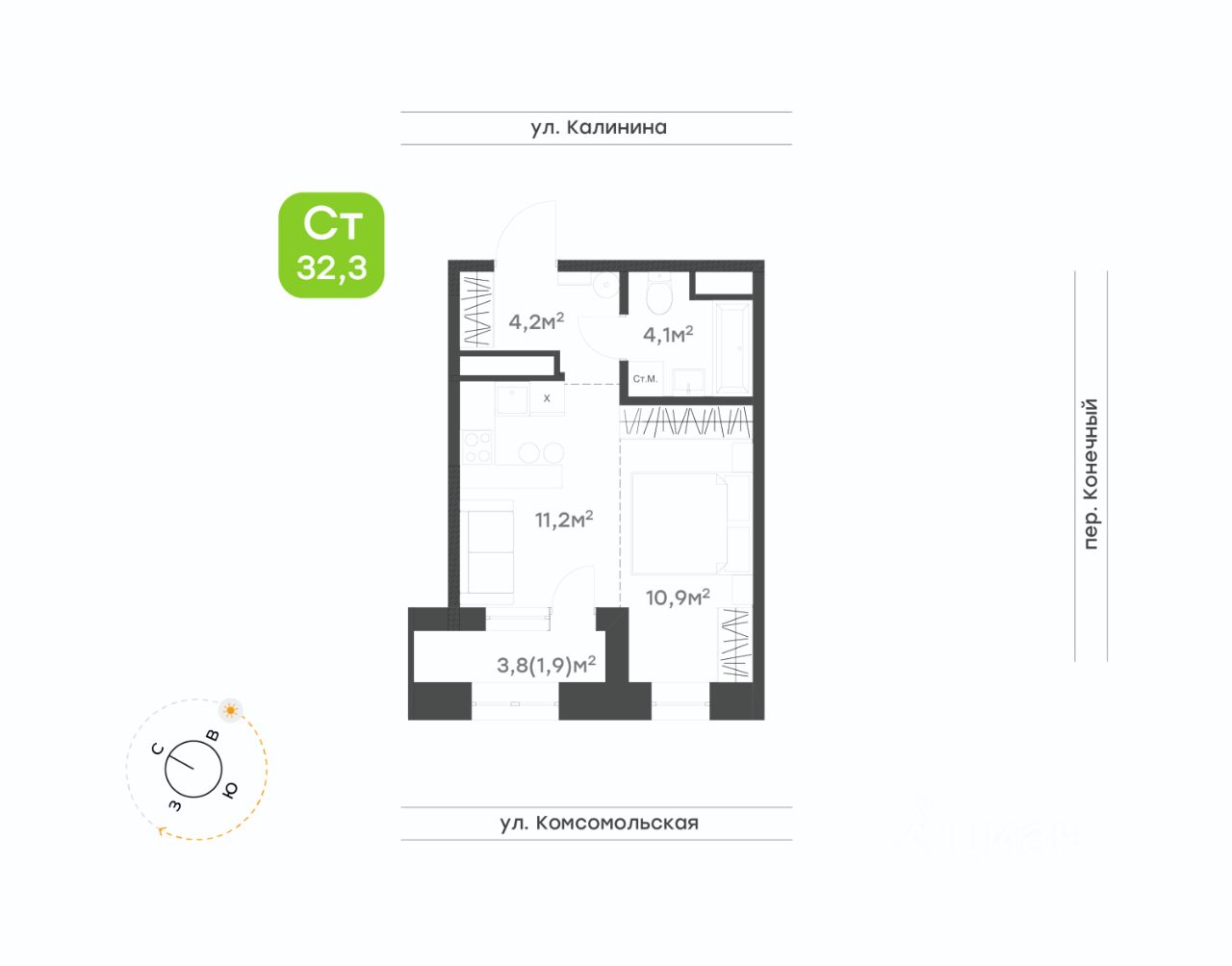 Компактная студия для молодой пары и людей, ценящих спокойную и уединённую жизнь;