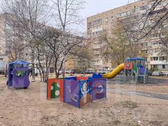Для детей разных возрастов во дворе благоустроенная детская площадка со спортивными снарядами, скамейками. Камеры с доступом с любого телефона или компьютера в лифтах, в подъезде, на улице.