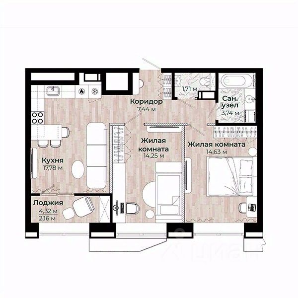 Квартира свободной планировки для воплощения индивидуального дизайна. Установлена входная дверь, радиаторы отопления, приборы учёта, стеклопакеты в алюминиевом профиле. Выложены стены сан.узла.