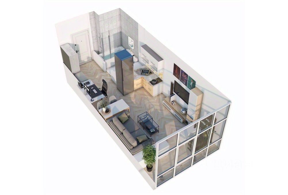 Квартира-студия без первоначального взноса. Балкон с панорамным остеклением как персональная зона отдыха, работы или место хранения. Идеальный вариант для сдачи в аренду (ЖК расположен рядом с ЖД- и автовокзалами, р-н с высокой арендной платой).
