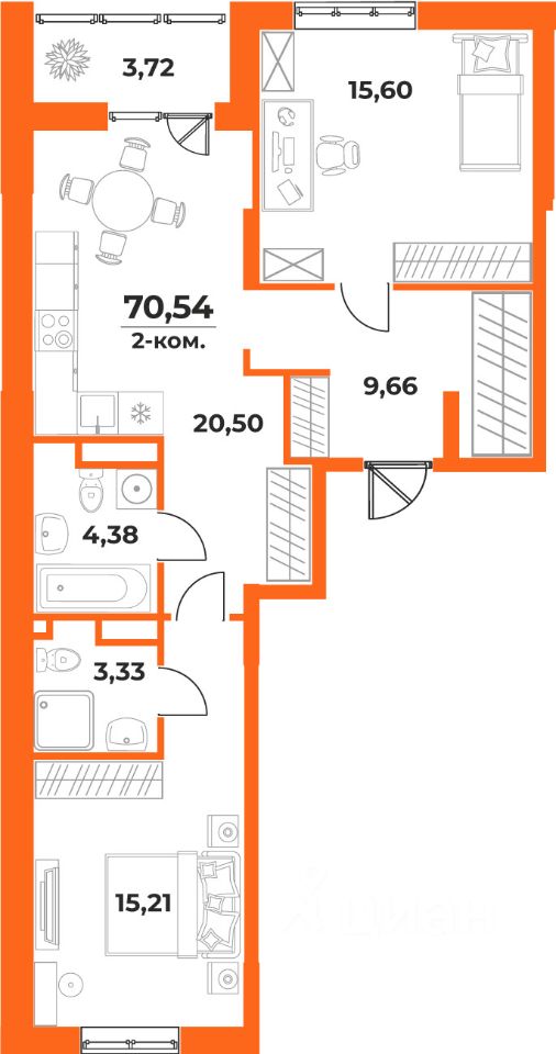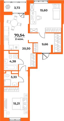 Общая площадь70,54 м²