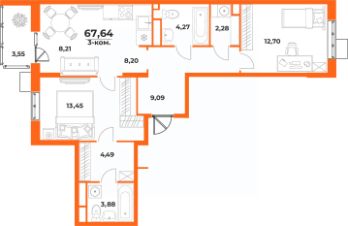 Общая площадь67,64 м²