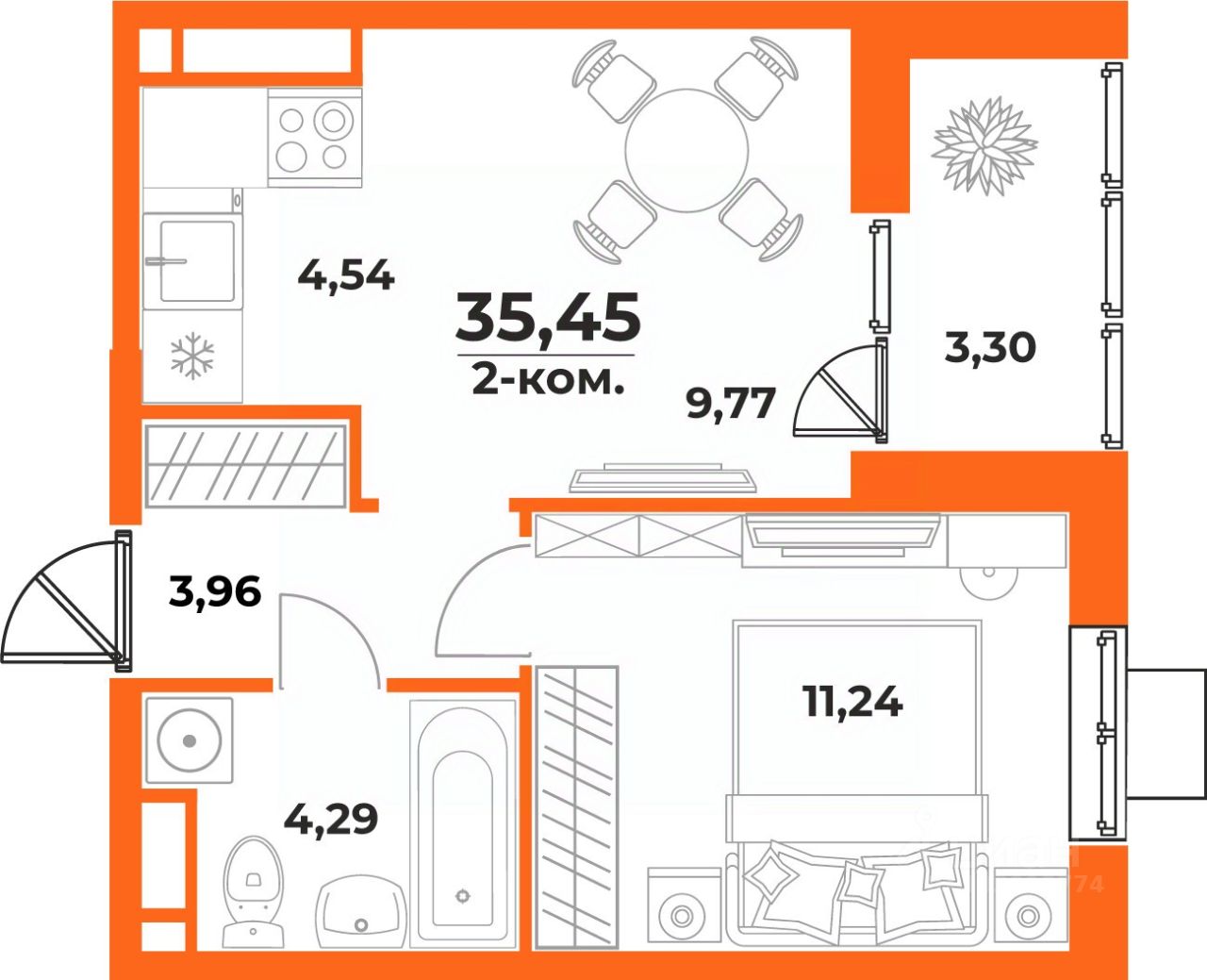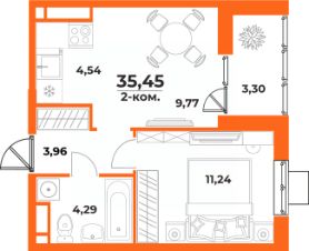Общая площадь35,45 м²
