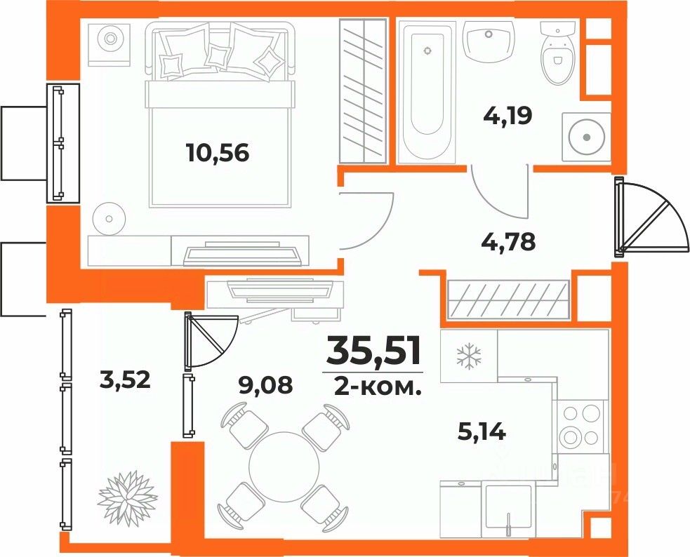 Общая площадь35,51 м²