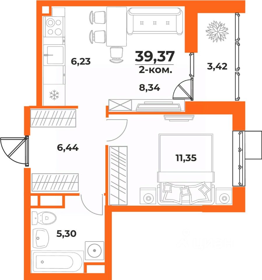 Общая площадь39,37 м²