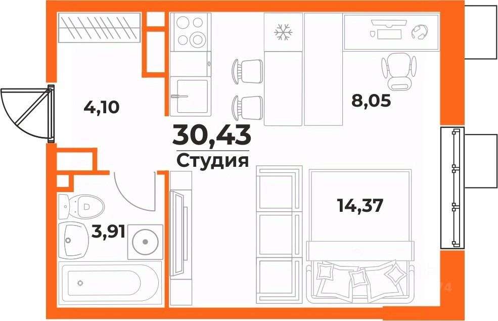 Общая площадь30,43 м²