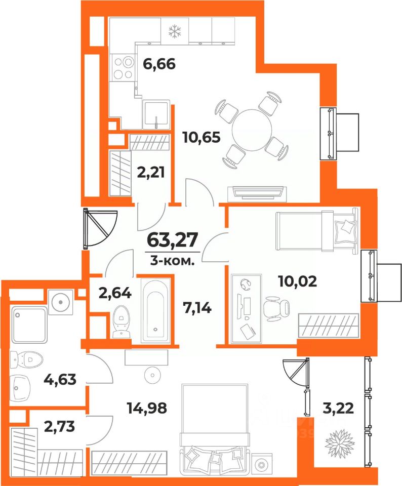 Общая площадь63,27 м²