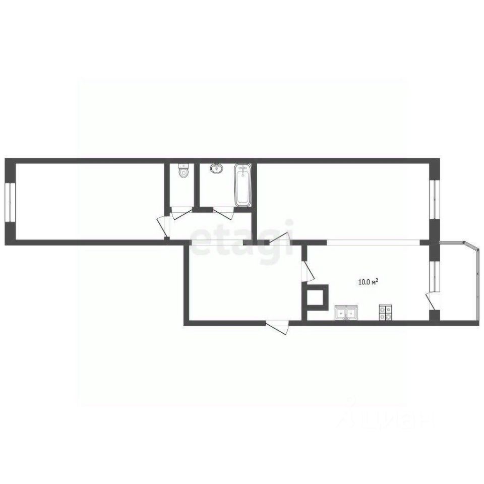* Раздельные комнаты на две стороны, просторный холл, большая кухня и раздельный санузел.