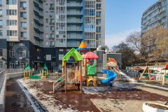 Огороженная и охраняемая территория с детской площадкой. Полная приватность и безопасность для вас и вашей семьи.