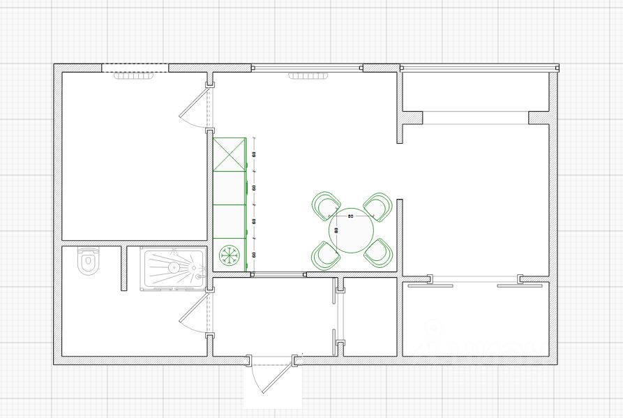 — выполнена функциональная перепланировка: в коридоре выделена ниша-гардеробная, а так же совмещен санузел, отдельные жилые комнаты, кухня-гостинная;
