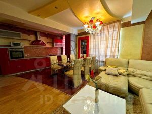 Уникальная планировка объединяет кухню и гостиную. Большие окна и высокие 3 метровые придают помещению воздушности и легкости. В двухуровневом потолочном декоре строены софиты.
