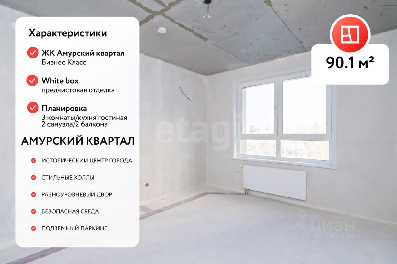 Просторная 3-комнатная квартира в ЖК "Амурский квартал" — стиль, комфорт и панорамные виды на Амурский бульвар. Дом сдан, можно заехать и создать интерьер мечты.