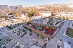 • Разноуровневая детская площадка с амфитеатром.