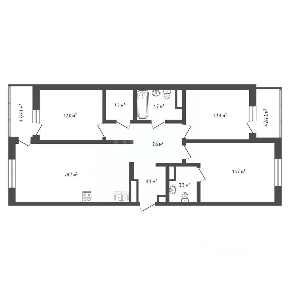 Современная трёхкомнатная планировка: