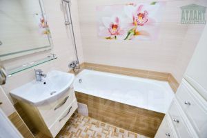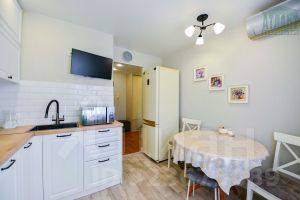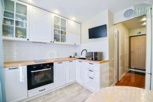 В квартире сделан современный, капитальный ремонт: залиты полы, заменена проводка, выровнены стены и потолки, сан узел в кафеле, межкомнатные двери из массива, лоджия 6 метров с отделкой, встроенный кухонный гарнитур и встроенная система хранения.