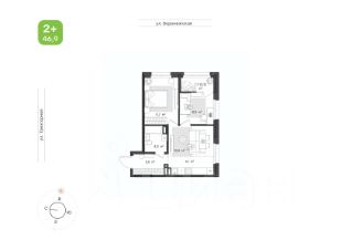 с прямой кухней-нишей. Зона спален особлена, из окон квартиры