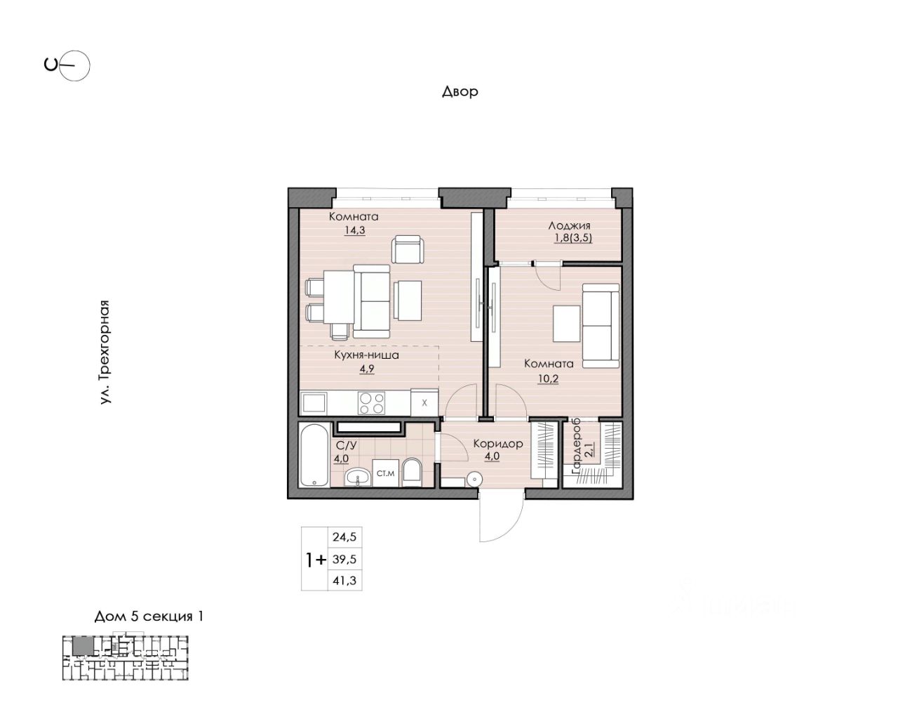 Однокомнатная квартира евроформата для молодой семьи и людей, ценящих спокойную и уединенную жизнь.