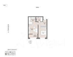 Интересная особенность - кухня-гостиная с нишей под гарнитур и возможностью установить барную стойку.