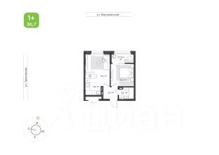 Интересная особенность - кухня-гостиная с нишей под гарнитур и возможностью установить барную стойку.