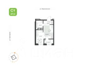 Компактная и функциональная студия для молодой семьи и людей, ценящих спокойную и уединённую жизнь.