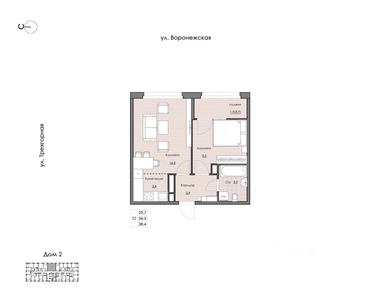 Общая площадь38,4 м²