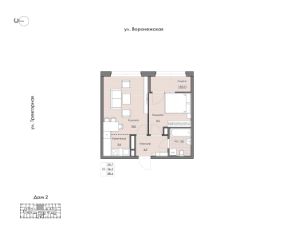 Однокомнатная квартира евроформата Интересная особенность - кухня-гостиная с нишей под гарнитур и возможностью установить барную стойку. Уютная спальня с местом под стеллаж или шкаф, с выходом на лоджию, с которой открывается вид на ул. Воронежская.