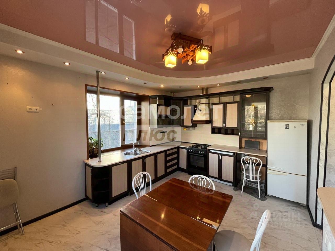 Установлены натяжные потолки высотой 3,2 м и современные пластиковые окна;