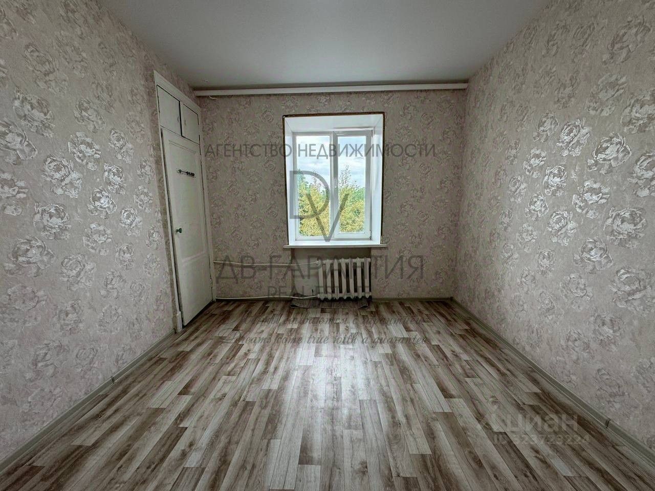 В комнате выполнен качественный косметический ремонт: аккуратно поклеены обои, постелен современный линолеум, натянут потолок, что придает помещению свежий и ухоженный вид.