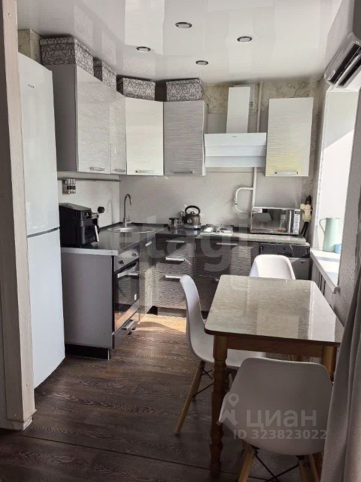 Планировка: Гостиная, совмещенная с кухней, создает ощущение простора и света. Две изолированные комнаты (спальня и еще одна) и функциональный застекленный балкон с практичными шкафами для хранения.