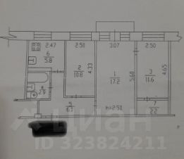 Продаётся трехкомнатная квартира общей площадью 56.6 квадратных метров на четвёртом этаже пятиэтажного панельного дома, расположенного в центральной части города.