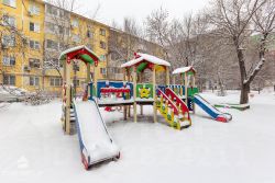 Данный дом расположен в спокойном районе с закрытой территорией и парковкой со шлагбаумом, что обеспечивает дополнительное удобство и безопасность жильцов. Во дворе дома имеется детская площадка.