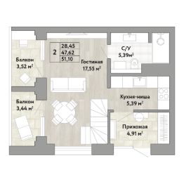 Продаётся 2-комнатная квартира в строящемся доме (Корпус 3 (Бизнес)), срок сдачи: II-кв. 2026, общей площадью 47.62 кв.м., на 1 этаже. Новый жилой комплекс Stories от Специализированного застройщика "Ю-Девелопмент" расположен по адресу: г. Хабаровск, по ул. имени Лейтенанта С.В. Орлова.