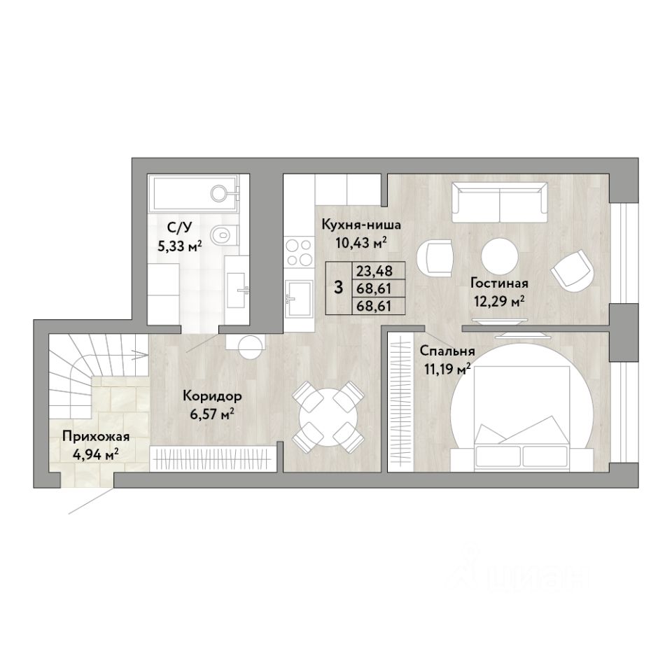 Продаётся 3-комнатная квартира в строящемся доме (Корпус 2 (Детство)), срок сдачи: II-кв. 2026, общей площадью 68.61 кв.м., на 1 этаже. Новый жилой комплекс Stories от Специализированного застройщика "Ю-Девелопмент" расположен по адресу: г. Хабаровск, по ул. имени Лейтенанта С.В. Орлова.
