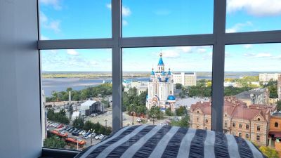Продается просторная 4-комнатная квартира в новом , кирпичном доме .Из панорамных окон квартиры открывается красивый вид на исторический центр города, реку Амур .