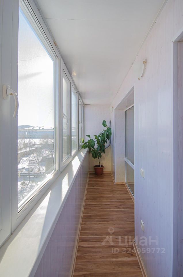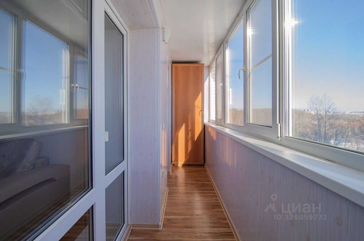 Большая застеклённая лоджия — дополнительное пространство для отдыха или хранения.