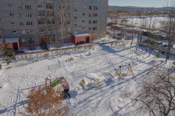 Вид во двор — окна выходят на детскую площадку, где всегда царит атмосфера радости и уюта.