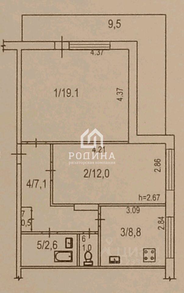 Квартира расположена на 4 этаже 10-этажного панельного дома 1993 года постройки. Общая площадь — 51,1 кв. м, жилая — 31,1 кв. м, площадь кухни — 8,8 кв. м. Высота потолков — 2,67 м. Комнаты изолированы, что обеспечивает комфортное проживание.