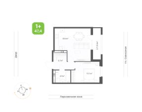 47,4 м²