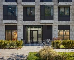 Входы в подъезды "Северного парка" мы сделаем на уровне земли для комфортного перемещения по территории квартала любым способом: пешком, на самокате или с коляской. Благодаря панорамному остеклению, которое пропускает много естественного света, первые этажи будут просторные и светлые.