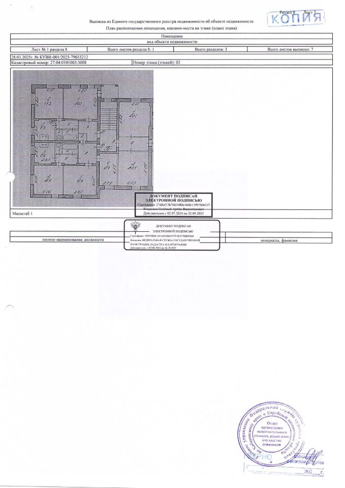 Жилое помещение, комната площадью 29,8 кв. м, кадастровый номер 27:04:0101003:3008. Местоположение: Хабаровский край, п. Ванино, ул. Матросова, д. 9, кв. 10. Регистрационный номер 550/А. Собственник Пожарова В.М. Начальная цена 1646875 руб. (НДС не облагается). Задаток 411718,75 руб. Шаг аукциона 16468,75 руб (ОСП по Ванинскому району 89249265032 Ващенко ОВ)