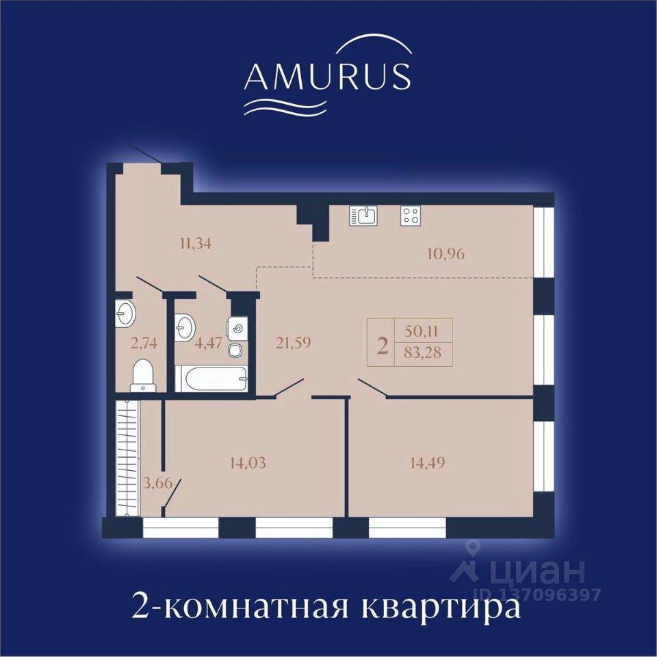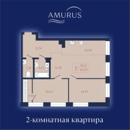 Продаётся 2-комнатная квартира в строящемся доме (Дом 23), срок сдачи: II-кв. 2026, общей площадью 83.28 кв.м., на 5 этаже. Новый жилой комплекс AMURUS от специализированного застройщика "ДАУП" расположен по адресу: г. Хабаровск, по ул. Кавказская.