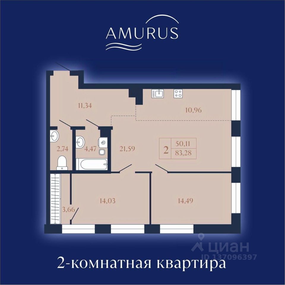 Продаётся 2-комнатная квартира в строящемся доме (Дом 23), срок сдачи: II-кв. 2026, общей площадью 83.28 кв.м., на 2 этаже. Новый жилой комплекс AMURUS от специализированного застройщика "ДАУП" расположен по адресу: г. Хабаровск, по ул. Кавказская.