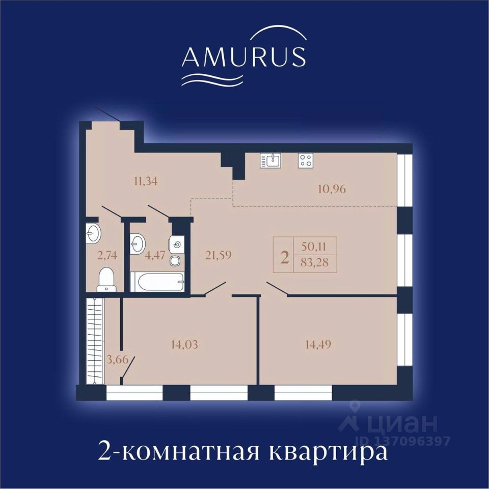 Продаётся 2-комнатная квартира в строящемся доме (Дом 23), срок сдачи: II-кв. 2026, общей площадью 83.28 кв.м., на 9 этаже. Новый жилой комплекс AMURUS от специализированного застройщика "ДАУП" расположен по адресу: г. Хабаровск, по ул. Кавказская.
