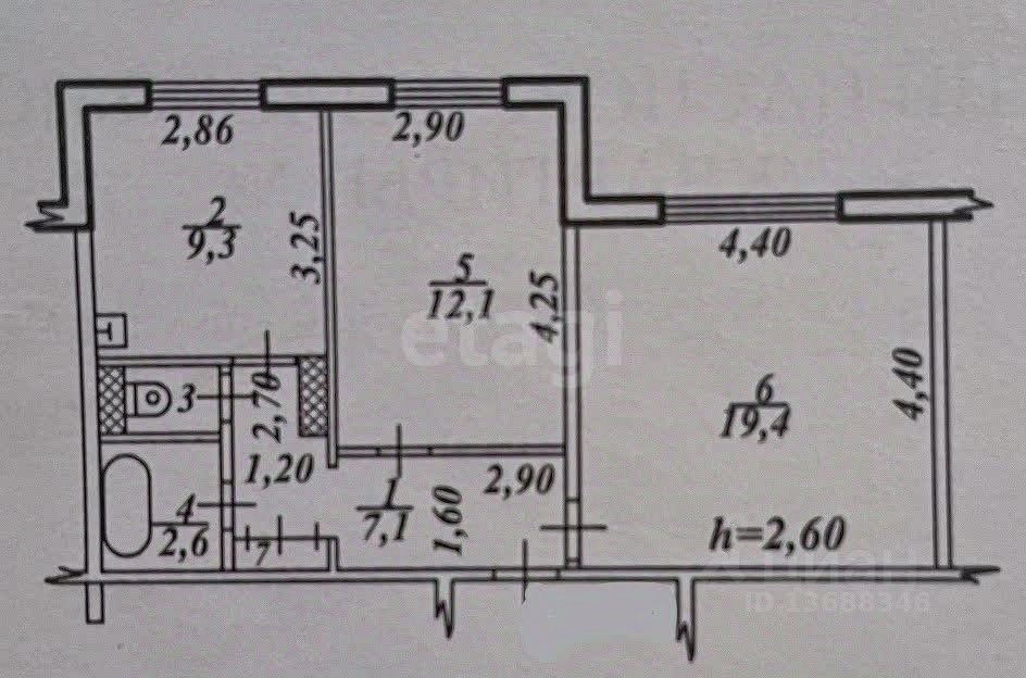 Описание: квартира площадью 52.5 м², расположена на 1 этаже