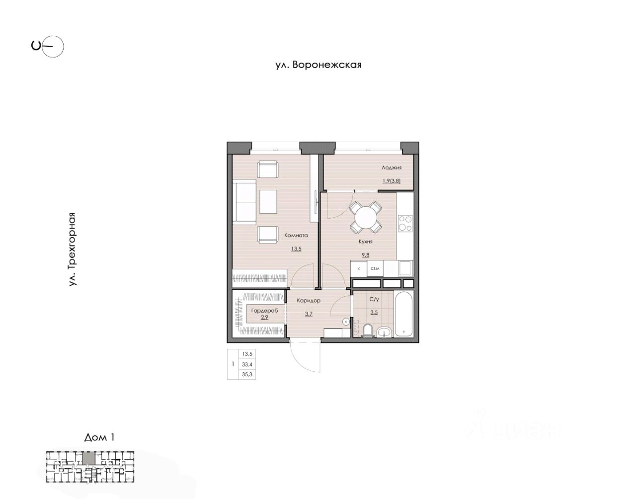 Классическая планировка однокомнатной квартиры с важными улучшениями; Оргономичная кухня с выходом на лоджию даст возможность организовать зоны готовки, приёма пищи и релакса; Гардероб в коридоре и гардеробная ниша в комнате позволит не тратиться на шкафы и комоды и освободиться полезную площадь; Жилая комната прямоугольной формы отлично подходит для расстановки мебели "под настроение"