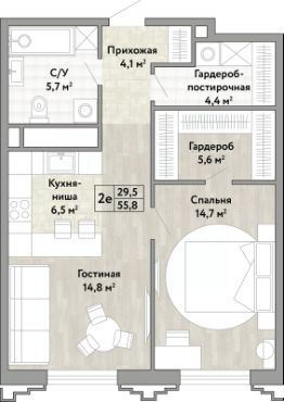 Продается двухкомнатная квартира с европланировкой от застройщика в ЖК "Сердце Бонивура" на 17 этаже. Квартира без отделки, новый собственник может сделать ремонт по индивидуальному проекту. Общая площадь: 55.8 кв.м., жилая: 29.5 кв.м., общая площадь гостиной-столовой с кухонной зоной: 21.3 кв.м. Европланировка, за счет большой площади кухни-гостиной квартира выглядит просторной и очень удобна для жизни. Комнаты изолированные, все окна выходят на одну сторону. В квартире один совмещенный санузел. Высота потолков 2.85 м.