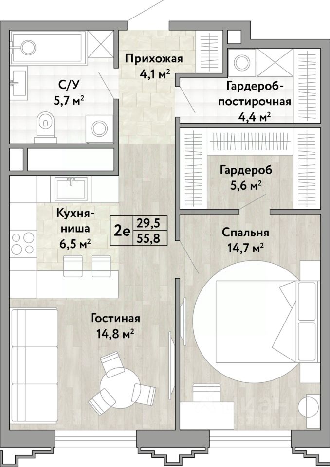 Просторная 2-комн. квартира с европланировкой в ЖК "Сердце Бонивура" на 20 этаже. Квартира без отделки, новый владелец может сделать ремонт по индивидуальному дизайн-проекту. Общая площадь: 55.8 кв.м., жилая: 29.5 кв.м., общая площадь гостиной-столовой с кухонной зоной: 21.3 кв.м. Европейская планировка, в просторной кухне-гостиной удобно как готовить, так и отдыхать. Комнаты изолированные, все окна выходят на одну сторону. В квартире один совмещенный санузел. Высота потолков 2.85 м.