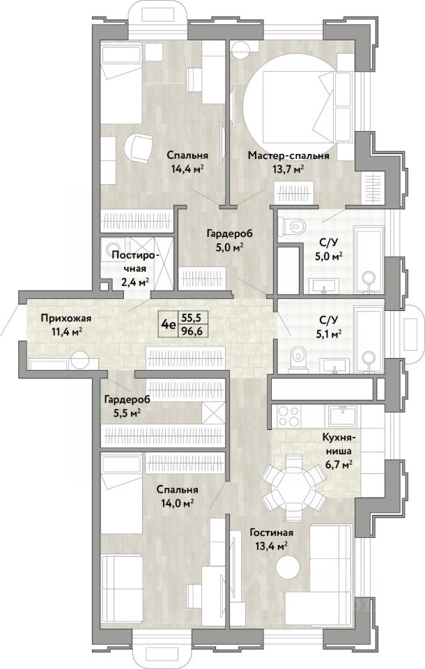 Продается 4-комн. квартира с европланировкой от застройщика в ЖК "Сердце Бонивура" на 18 этаже. Квартира без отделки, полностью готова к чистовой отделке и дальнейшему ремонту. Общая площадь: 96.6 кв.м., жилая: 55.5 кв.м., суммарная площадь гостиной-столовой с кухонной зоной: 20.1 кв.м. Европейская планировка, кухня-гостиная - идеальный вариант для тех, кто любит часто принимать гостей. Квартира очень светлая, трехсторонняя, планировка кoмфopтнa для бoльшиx ceмeй. В квартире два совмещенных санузла. Высота потолков 2.85 м.