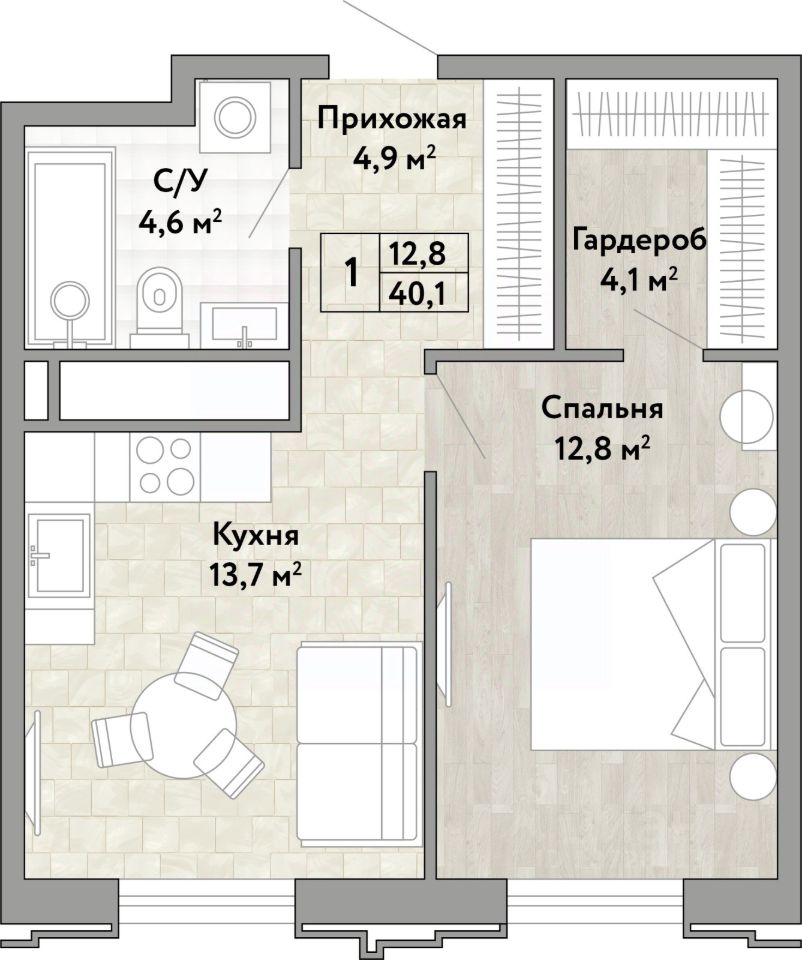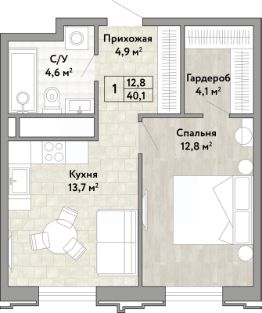 1-комн. квартира в ЖК "Сердце Бонивура" на 15 этаже. Квартира без отделки, полностью готова к чистовой отделке и дальнейшему ремонту. Общая площадь: 40.1 кв.м., жилая: 12.8 кв.м., площадь просторной кухни-столовой: 13.7 кв.м. Все окна выходят на одну сторону. В квартире один совмещенный санузел. Высота потолков 2.85 м.